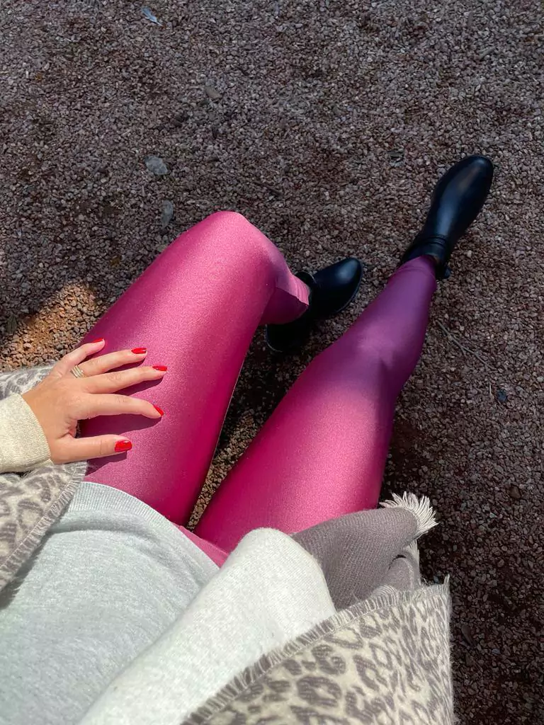 Legging em tecido brilhoso, leve, de compressão média (confortável, não aperta). Cintura alta com barra dupla. Extremamente confortável no exercício e altamente versátil no look casual! Use e abuse com salto, papetes, sapatilhas, mules, etc. Composição 87%poliamida 13%elastano. TAMANHOS (nossa confecção é um pouco maior: é comum, por exemplo, quem usa G, pelas medidas abaixo, comprar M e ficar perfeito): P-36/38:cintura 65-75/quadril 90-100